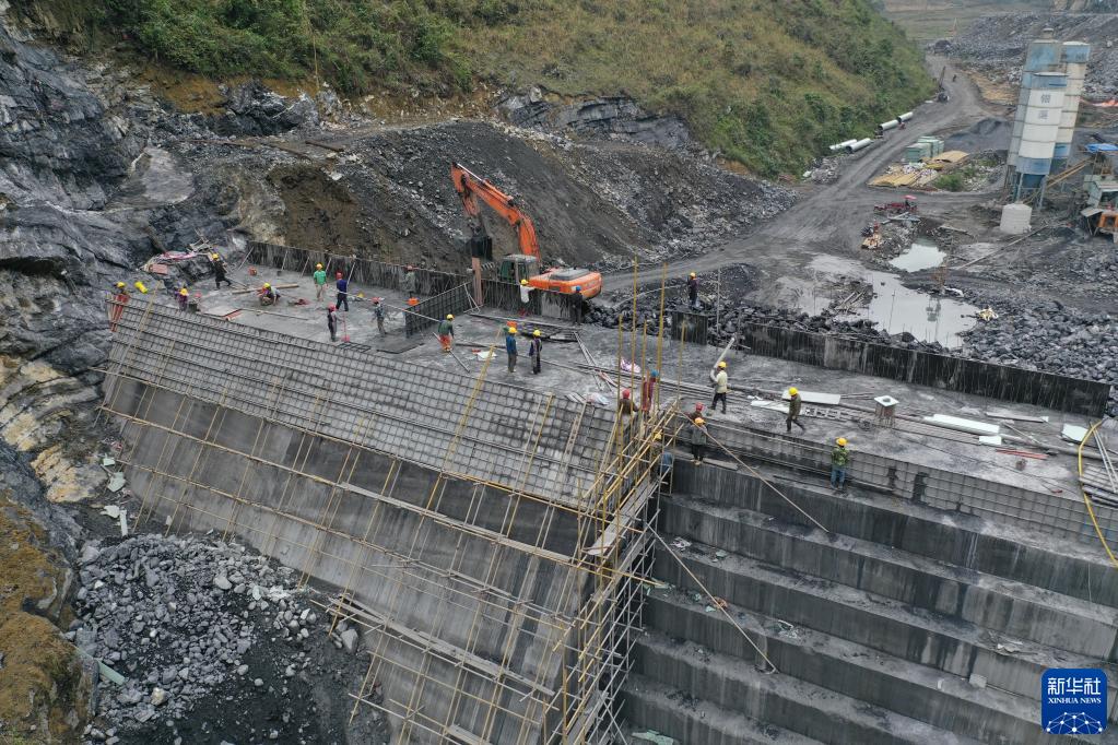 這是廣西大化瑤族自治縣七百弄鄉王烈水庫建設施工現場(2021年3月15日攝,無人機照片)。