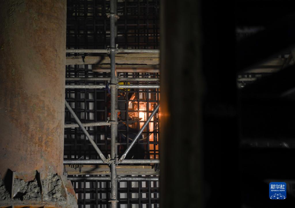 3月21日,在成都地鐵27號線金府站,中建三局的施工人員在進行地下站房焊接作業。