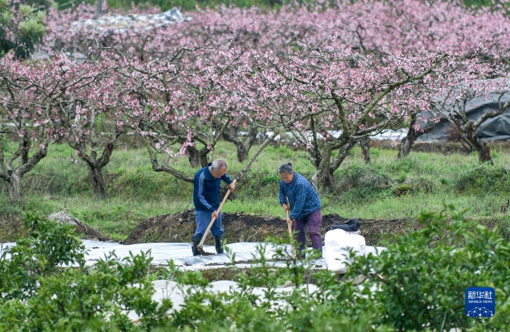 3月21日,農民在貴州省遵義市余慶縣白泥鎮明星社區田間勞作。