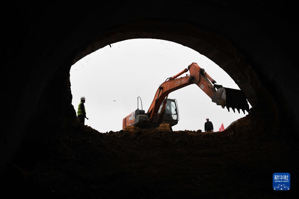 3月21日,中鐵四局施工人員在巢馬城際鐵路新大金山隧道進行貫通施工。