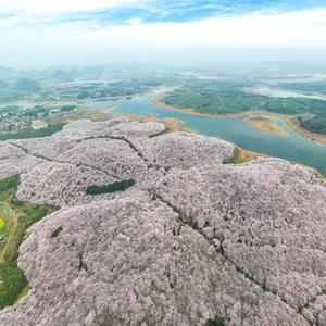 近日,貴州省貴安新區櫻花園內的2.4萬畝櫻花競相綻放,如雪似霞,吸引游客前來賞花觀光。