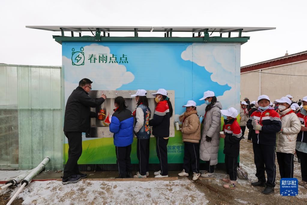3月21日,那曲市色尼區香茂鄉小學的同學們在新啟用的凈水站打水。