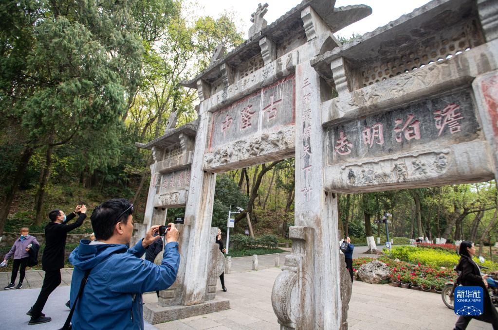 3月21日,游客在湖北省襄陽市古隆中景區游覽。