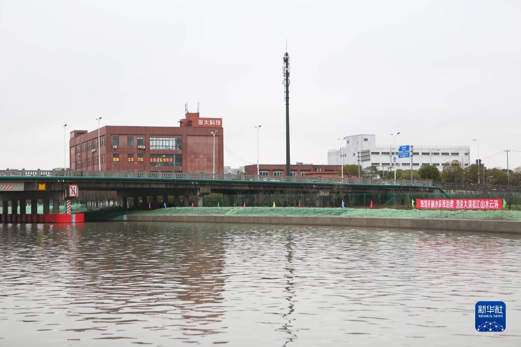 3月21日拍攝的位于洞涇港的松江新城綠環水脈建設現場。