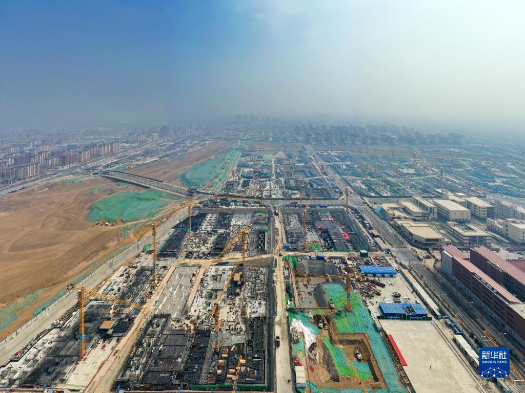 由中建三局等單位承建的容西片區安置房二期項目建設現場(3月21日攝,無人機照片)。