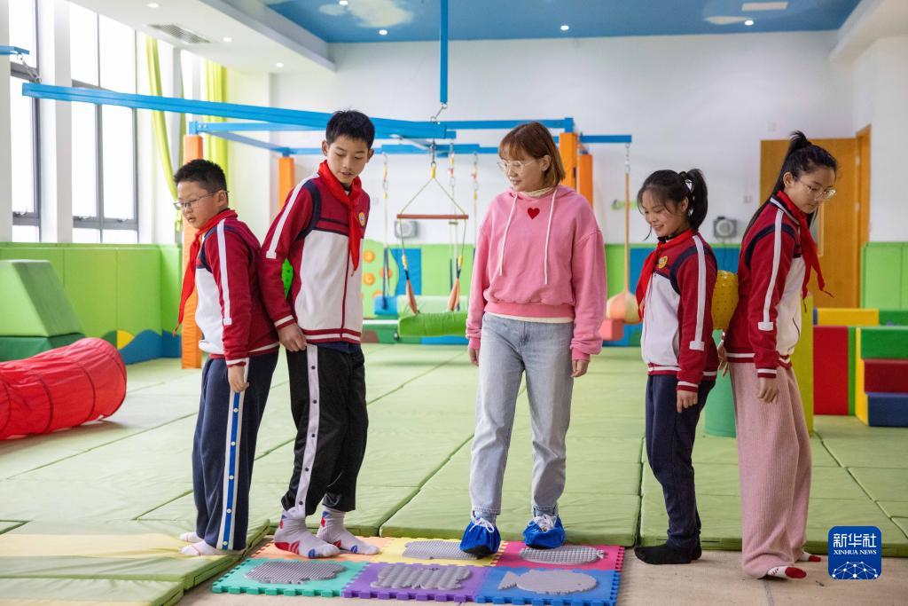 3月22日,寧波市江北區洪塘實驗學校的心理教師在感統訓練教室對學生進行游戲式心理輔導。