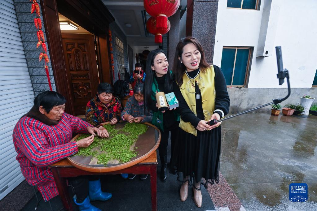 3月22日,兩名女子在諸暨市趙家鎮東莊村上陽自然村直播高山有機茶制作,助力網上銷售。