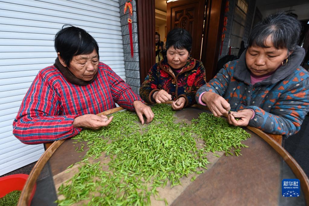 3月22日,趙家鎮東莊村上陽自然村的茶農在挑選剛采摘的高山有機茶。