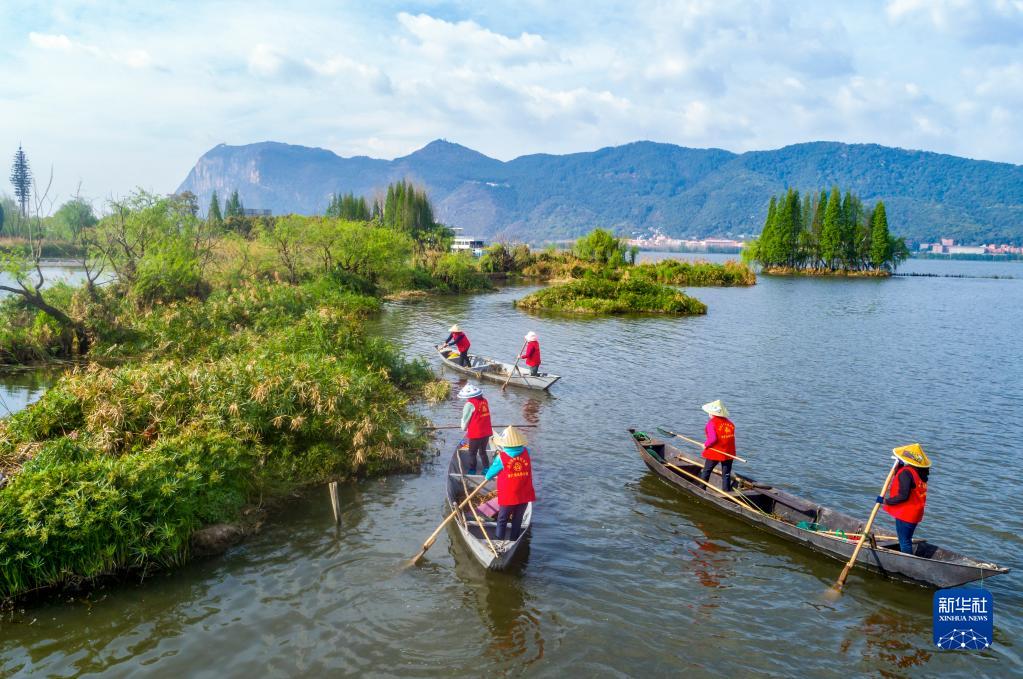 在云南昆明滇池邊,活躍著一支由當地婦女組成的巾幗打撈隊。她們每天駕駛船只打撈滇池及周邊入湖河道、濕地的垃圾、雜草等。這支隊伍成立至今已走過30多年歲月。