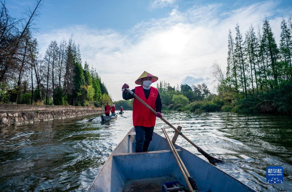 3月20日,巾幗打撈隊一名隊員駕船前往滇池草海開展打撈工作。