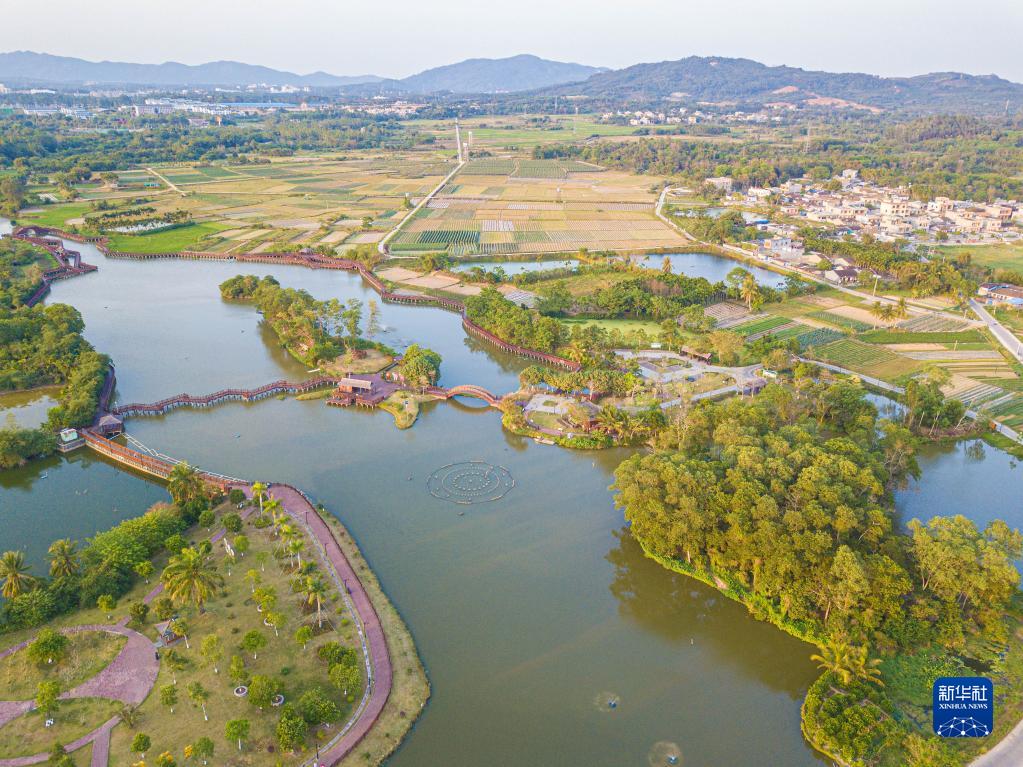3月20日在海南省屯昌縣拍攝的文贊生態濕地公園。該公園由昔日受污的文贊水庫變身而來。