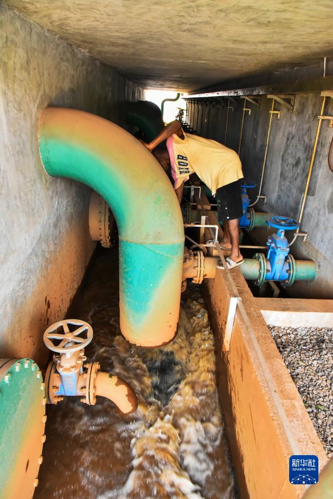 3月2日,工作人員在喀麥隆西部大區的巴富薩姆飲用水處理廠檢查排污管道。