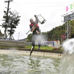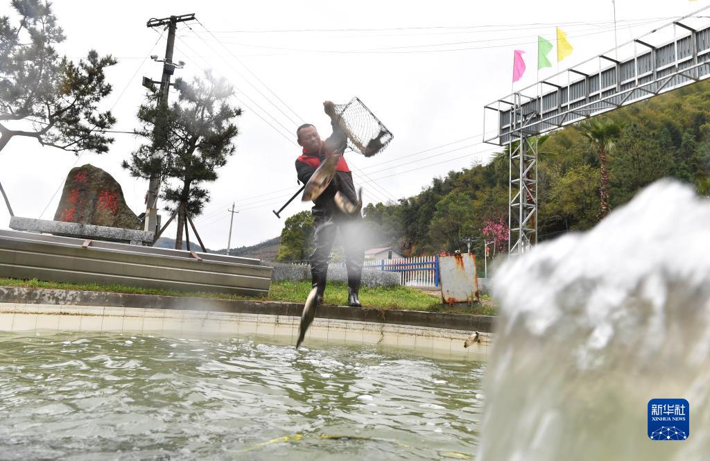 3月22日,衡山縣嶺坡鄉燈山村泉水魚養殖基地工作人員在捕魚。