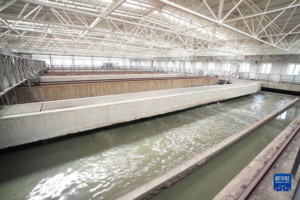 這是沈陽南部污水處理廠曝氣沉砂池,污水在這里進一步去除細小的雜物和砂粒(3月17日攝)。