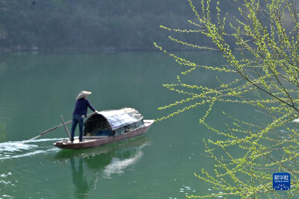 3月5日,在湖南省婁底市雙峰縣杏子鋪鎮江口村,河岸邊的柳樹吐出新芽。