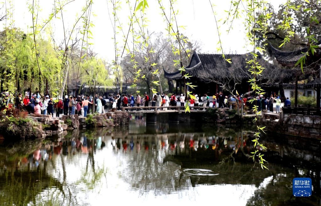 3月15日,游客在江蘇省蘇州市古典園林拙政園觀光游玩。
