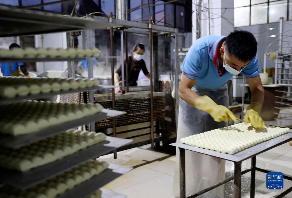 3月22日,石屏縣一家豆制品生產企業的工作人員在制作豆腐。
