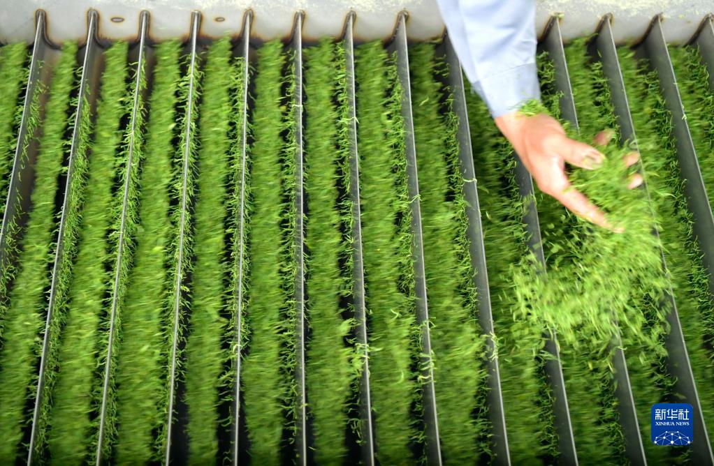 3月22日,湖北省宣恩縣椒園鎮一茶廠的工人在加工茶葉。