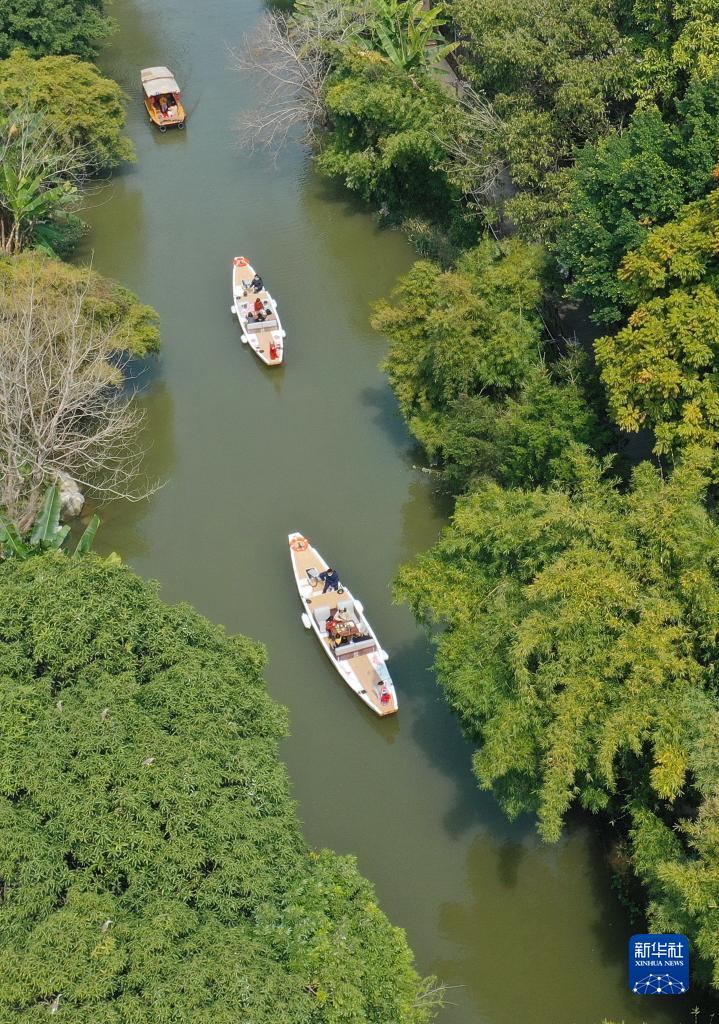 2月25日,游客乘船游覽福州白馬河(無人機照片)。