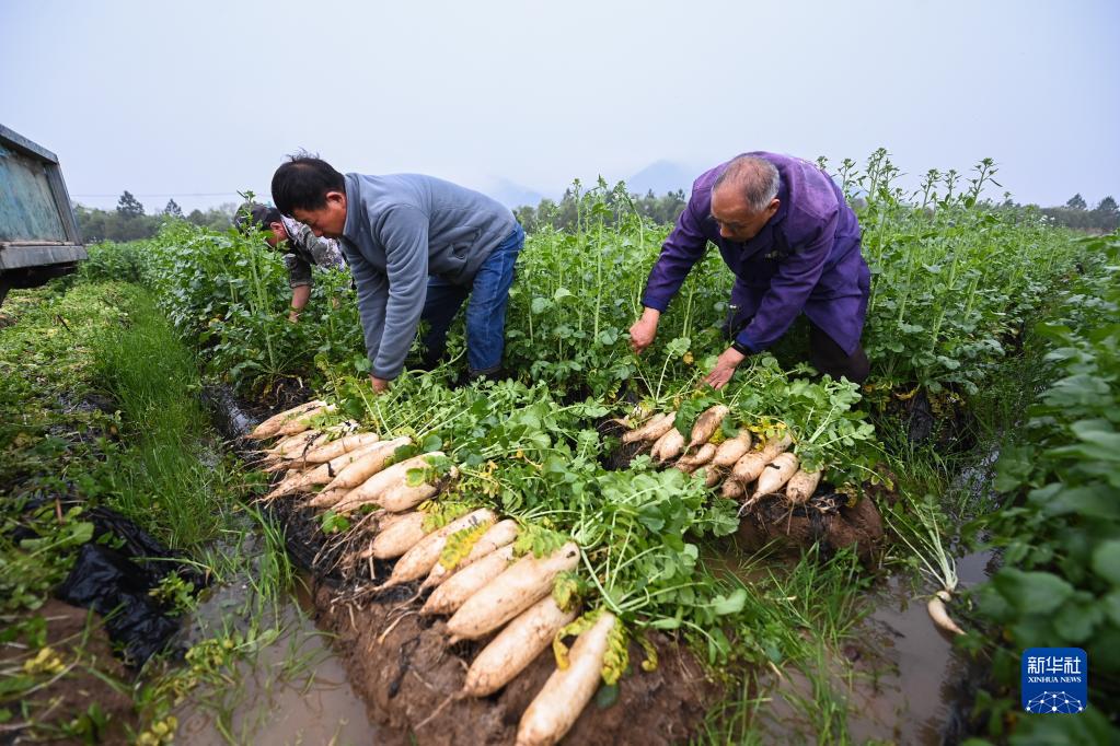 近日,在浙江省諸暨市姚江鎮國家級農業產業園,蔬菜基地里的蘿卜進入春季豐收季,種植戶忙著采摘、清洗、裝包,準備運往周邊縣市農貿批發市場。該基地是姚江鎮通過招引鄉賢回歸建立的項目,共占地100余畝,旨在拓寬當地農產品銷售渠道,帶動周邊農戶增收。在蘿卜收獲結束后,這里將繼續栽種毛豆等農作物。