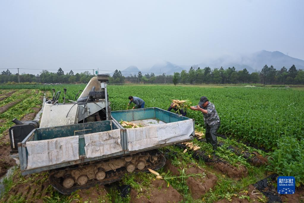 近日,在浙江省諸暨市姚江鎮國家級農業產業園,蔬菜基地里的蘿卜進入春季豐收季,種植戶忙著采摘、清洗、裝包,準備運往周邊縣市農貿批發市場。該基地是姚江鎮通過招引鄉賢回歸建立的項目,共占地100余畝,旨在拓寬當地農產品銷售渠道,帶動周邊農戶增收。在蘿卜收獲結束后,這里將繼續栽種毛豆等農作物。