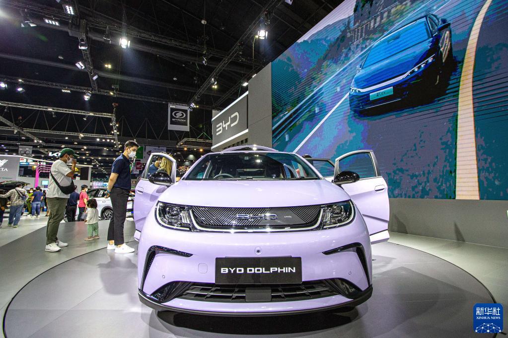 3月22日,觀眾在泰國曼谷國際車展上參觀比亞迪海豚汽車。