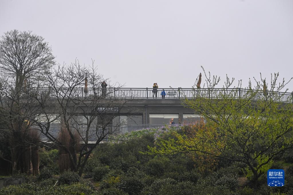 3月23日,游客在里山鎮安頂村觀賞美景。