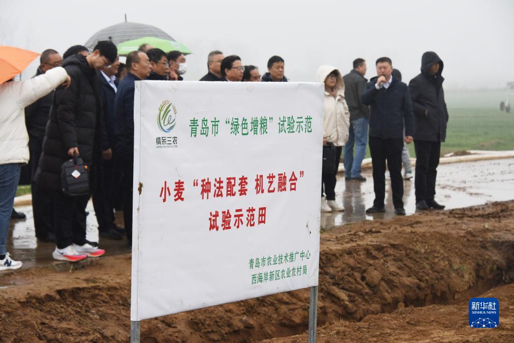 3月22日,青島市西海岸新區大場鎮小麥生產基地,參加“綠色增糧”農技培訓班的學員在觀摩學習。