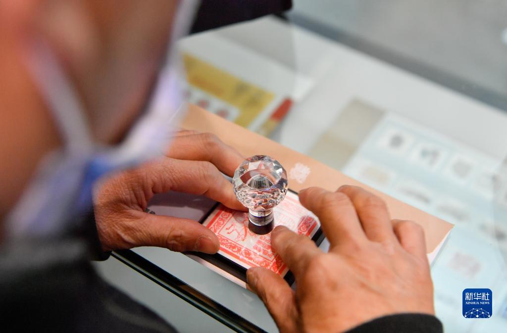 3月23日,在天津郵政博物館,集郵愛好者在紀念封上加蓋紀念戳。