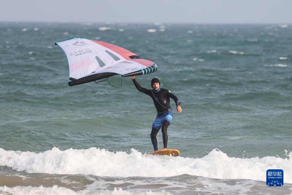3月22日,亞歷山大在海南博鰲玩風翼沖浪。