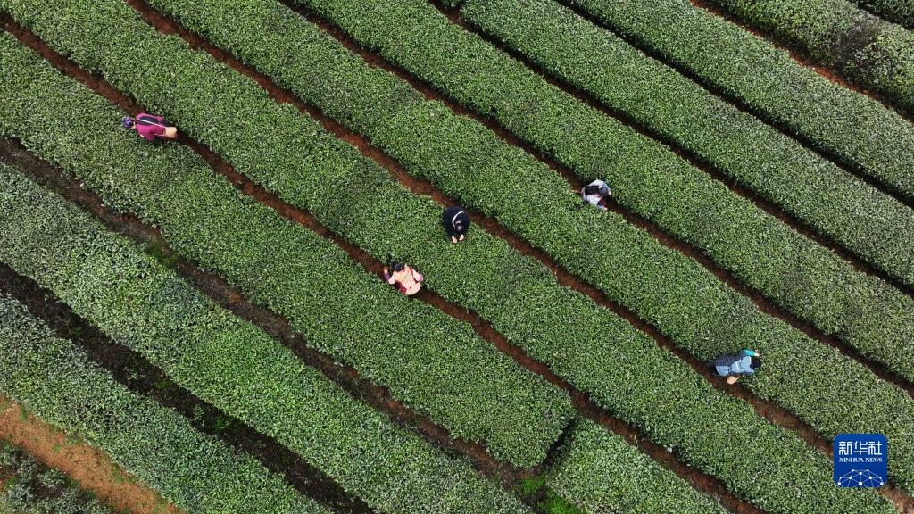 時下,在貴州省遵義市鳳岡縣永安鎮田壩社區的萬畝生態茶園基地,茶農搶抓農時采茶,一派繁忙景象。