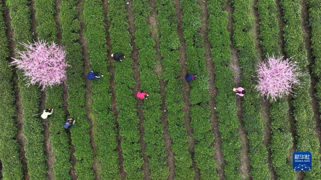 時下,在貴州省遵義市鳳岡縣永安鎮田壩社區的萬畝生態茶園基地,茶農搶抓農時采茶,一派繁忙景象。