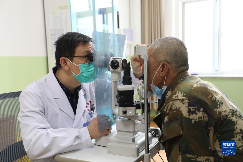 3月23日,在通渭縣人民醫院門診樓,青島市醫療“組團式”幫扶團隊隊長張杰為患者檢查。