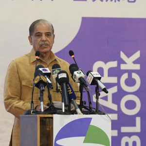 巴基斯坦總理夏巴茲·謝里夫22日在巴南部信德省塔爾地區舉行的塔爾煤田一區塊煤電一體化項目投產儀式上表示,中巴經濟走廊項目成果正在巴綻放光彩。新華社發(艾哈邁德·卡邁勒攝)