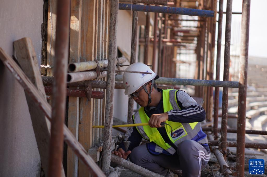 3月22日,工人在塞內加爾首都達喀爾的桑戈爾體育場施工。