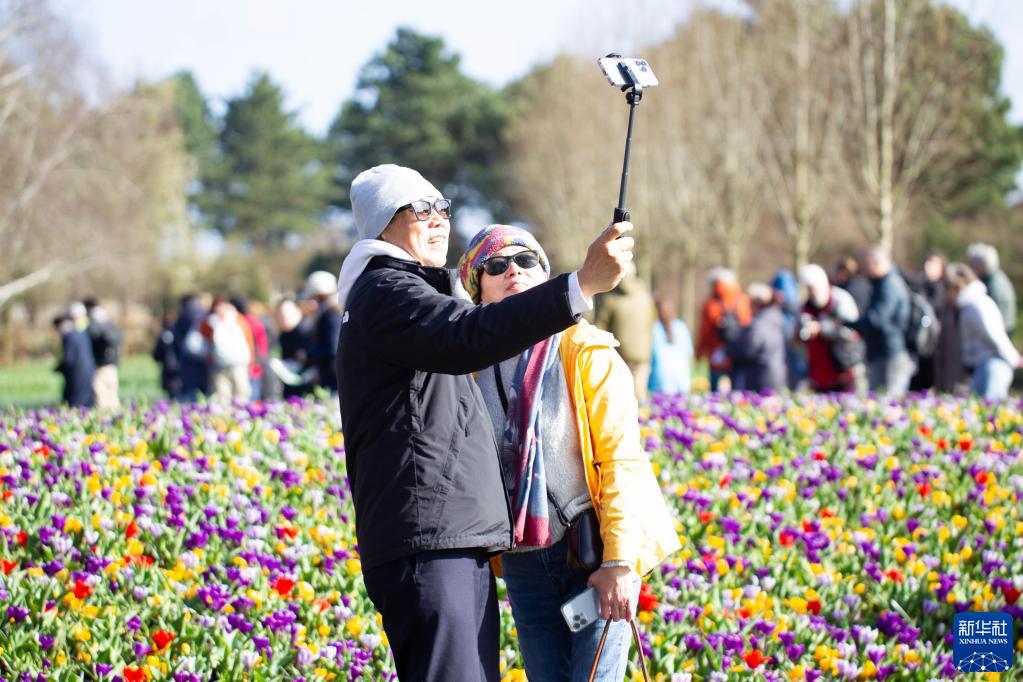 3月23日,游客在荷蘭利瑟的庫肯霍夫公園自拍。