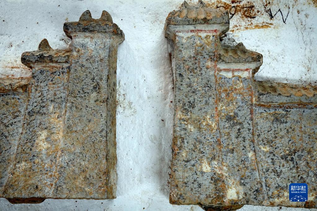這是洛陽孟津朱倉北朝墓內發現的石闕(3月15日攝)。