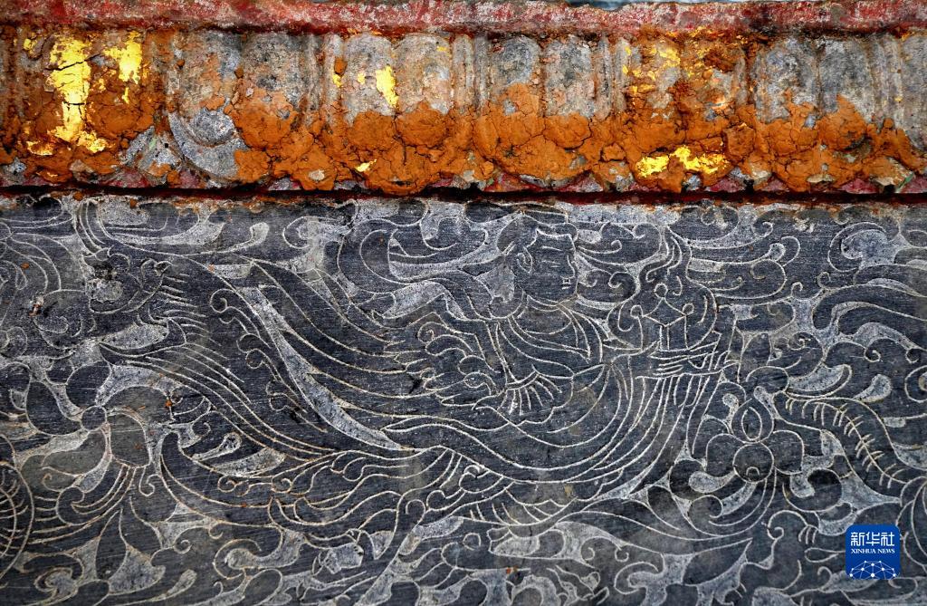 這是洛陽孟津朱倉北朝墓內發現的圍屏石棺床床框側面的圖像(3月15日攝)。