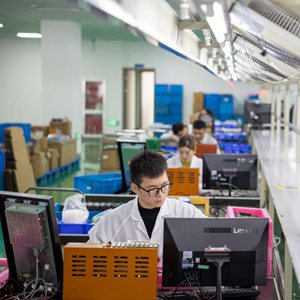 寧波伊士通技術股份有限公司的科研人員在實驗室內工作(3月21日攝)。