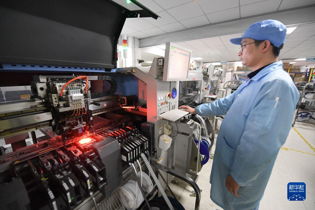 在位于衢州市的浙江合川科技股份有限公司,全自動貼片機在生產伺服電機驅動主板(3月21日攝)。