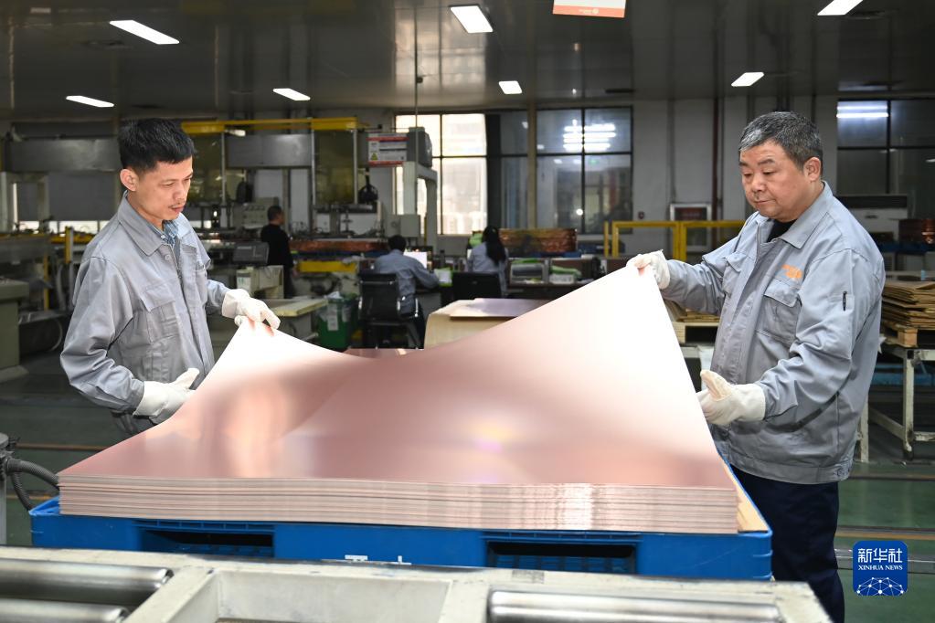 工人在位于杭州市的浙江華正新材料股份有限公司覆銅板生產車間作業(3月23日攝)。