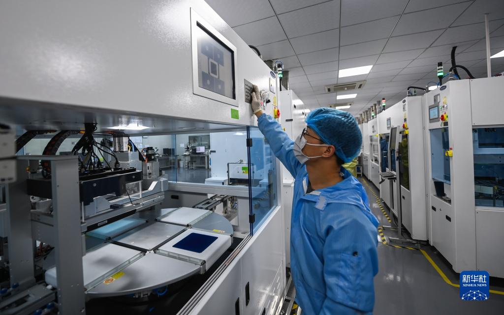 在杭州正銀電子材料有限公司的研發實驗室內,自動化設備在進行光伏板的絲網印刷(3月22日攝)。該公司是國家高新技術企業、浙江省高新技術企業研究開發中心、專精特新“小巨人”企業。