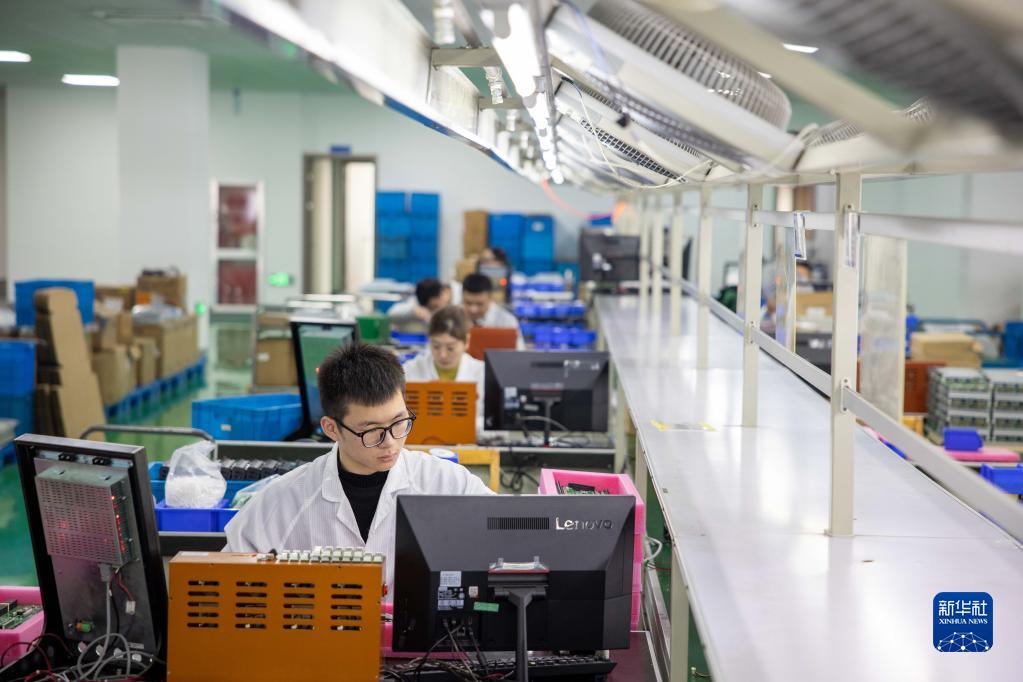 寧波伊士通技術股份有限公司的員工在生產線上工作(3月21日攝)。
