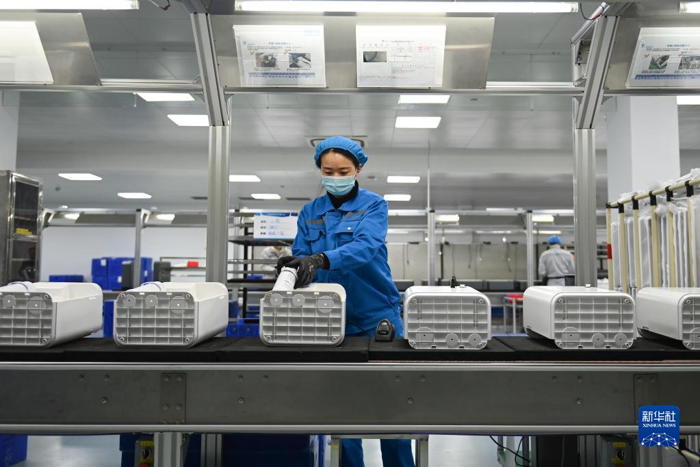 工人在浙江沁園水處理科技有限公司的生產車間檢測家用凈水產品(3月22日攝)。