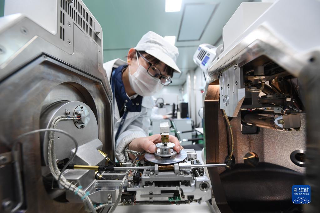 在寧波江豐電子材料股份有限公司分析檢測中心,工作人員對芯片靶材的原材料進行檢測(3月21日攝)。