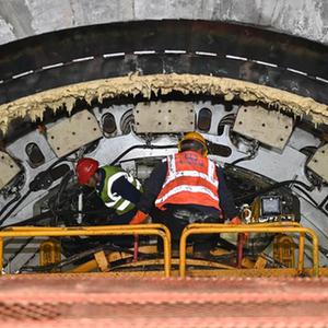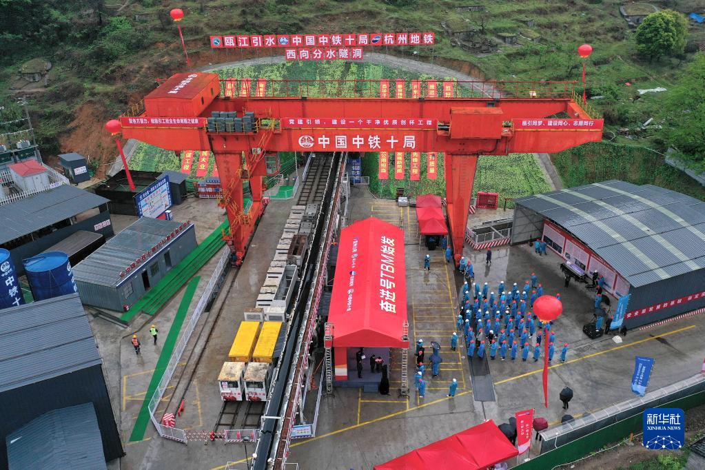 當日,在中鐵十局承建的浙江溫州甌江引水工程涉鐵段隧洞施工現場,首臺長約150米的“奮進號”雙護盾式TBM(全斷面硬巖隧道掘進機)正式開啟掘進。