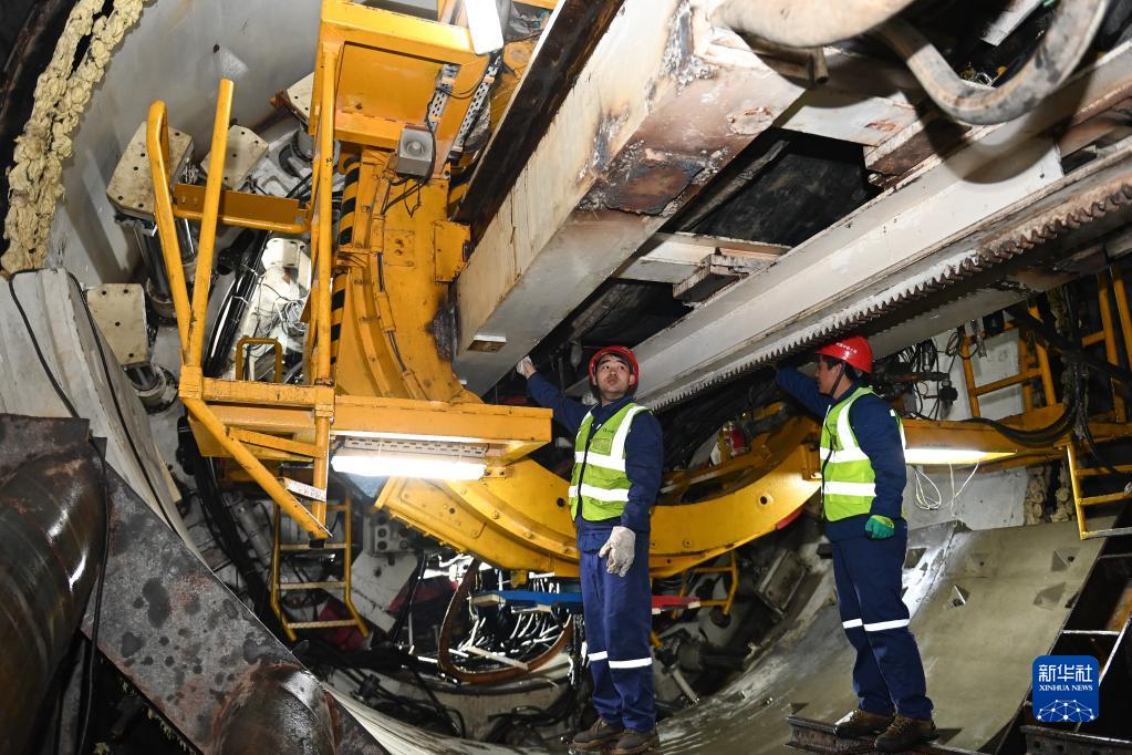 3月24日,施工人員在甌江引水工程西向分水隧洞內進行TBM設備檢修,以準備進一步掘進。