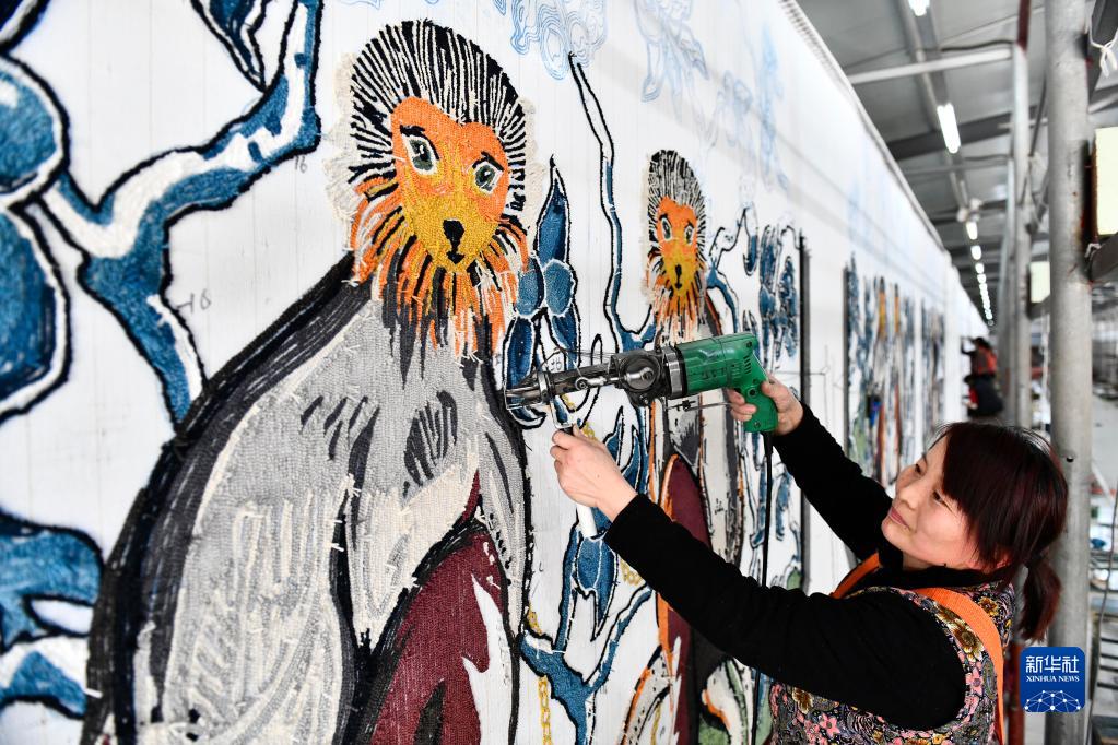 山東省陽信縣近年來在傳統手工制毯技藝提升的基礎上,引入地毯槍刺智能機器人、光學自動分選系統等技術,推動地毯產業提質增效,成為當地富民興縣的特色產業。