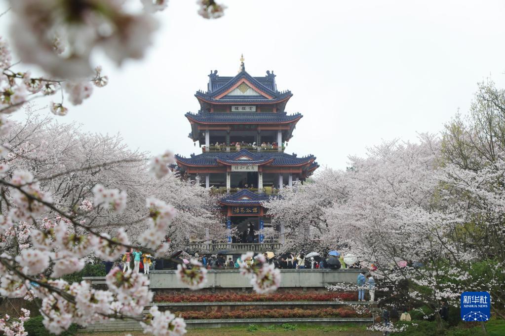 3月23日,游客登上賞櫻樓觀賞黿頭渚景區美景。