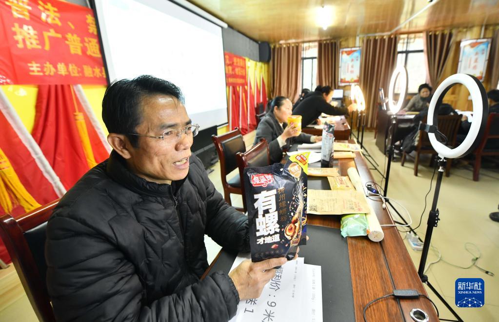 3月24日,在廣西融水苗族自治縣桿洞鄉黨鳩村,村民在學習電商直播技能。